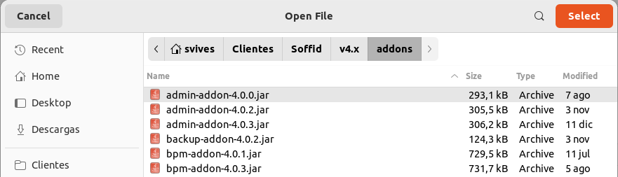 Soffid 4 allows you to install and update plugins through the new Addons marketplace feature.