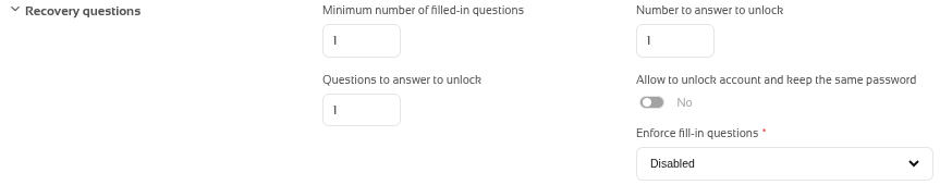For more informatión check the Recovery questions attributes.