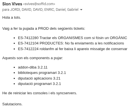 Vamos a realizar el despliegue a producción de los siguientes tickets/correos: