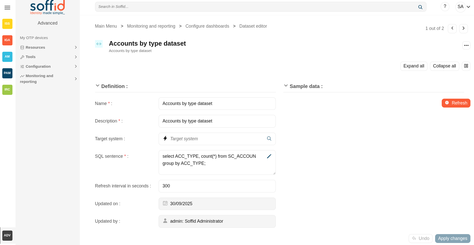 - SQL sentence: SQL sentence to retrieve the dataset from the Soffid database