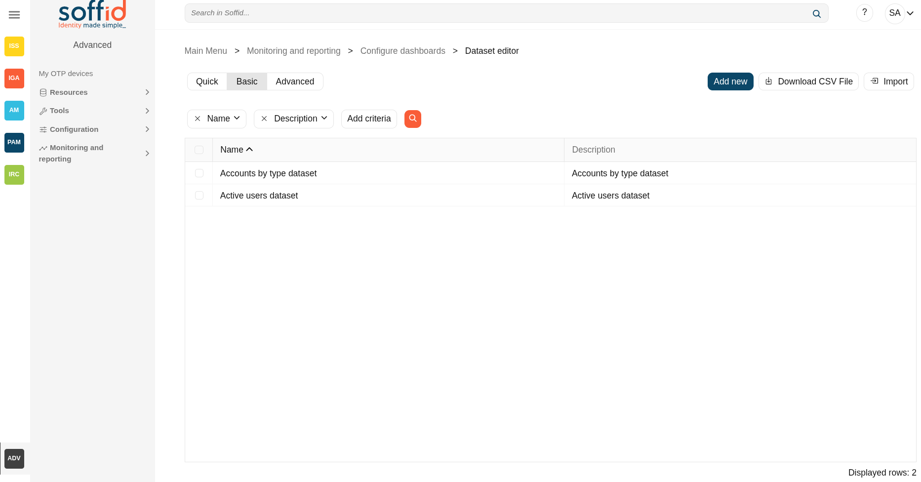 Configure dashboards > Dataset editor (addon-reports)
