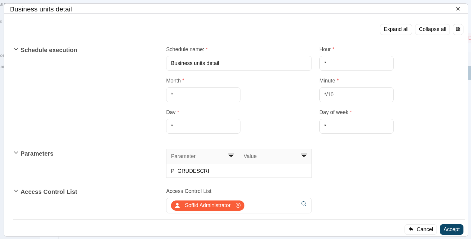 The "Schedule execution" section is the same as that used in the Scheduled tasks screen.