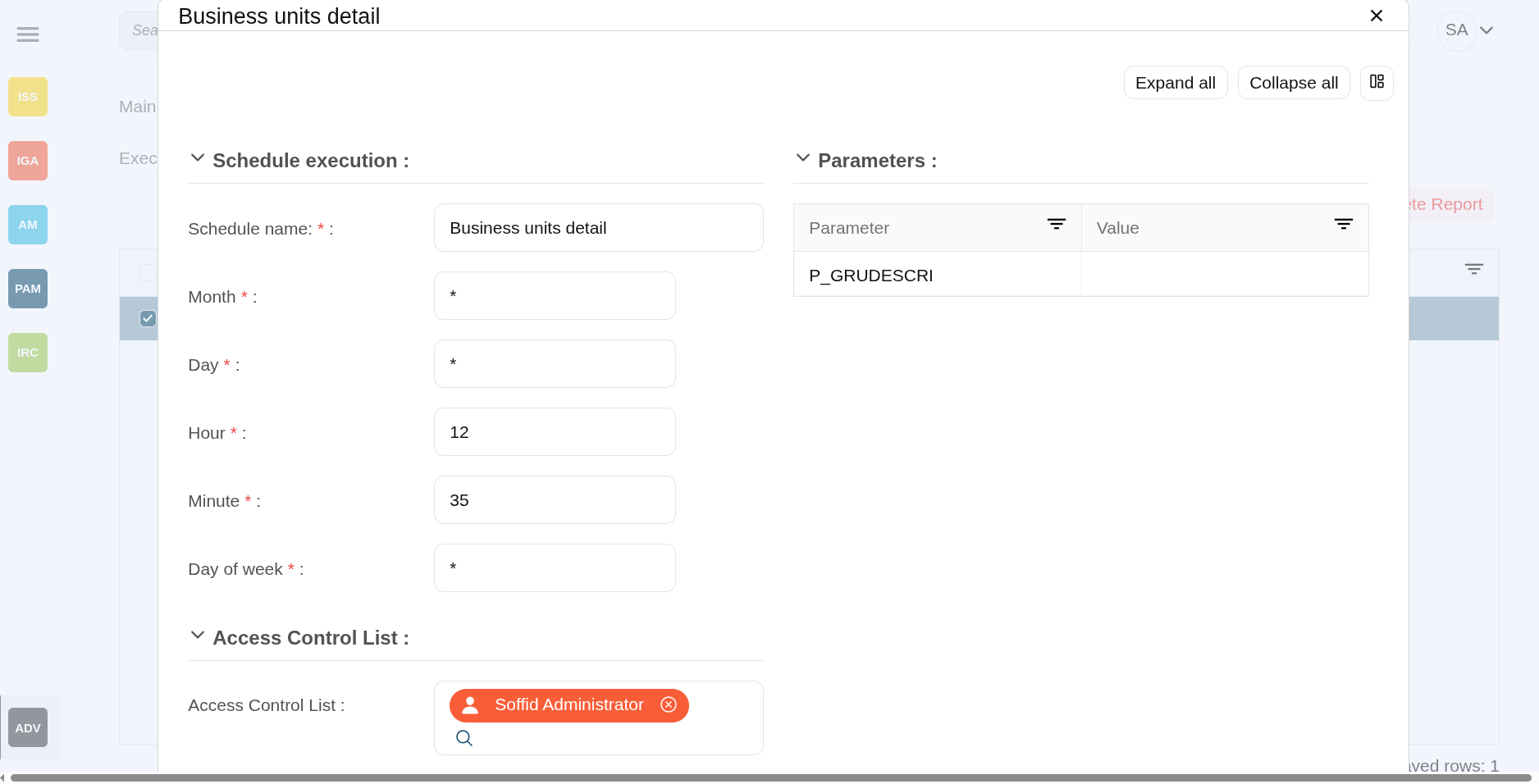 - Executed reports : where reports are manually started, executed or scheduled, also you can query the last executions.